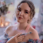 Jess Currier is a Los Angeles–based oil painter known for modern romantic portraits layered with floral motifs, balancing realism and impressionism. She creates work about hope and resilience, often blending figures with translucent flowers and foliage.